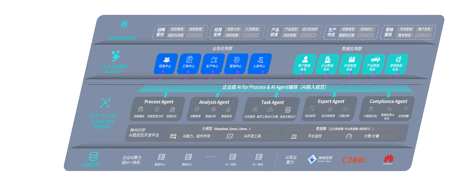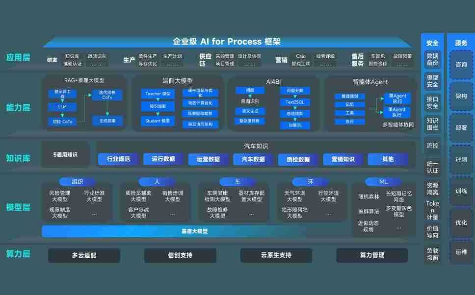 至尊国际问学智车解决方案是一套基于AI技术的汽车行业智能化系统,,,,覆盖从底层算力到顶层AI应用的全栈方案。。方案由算力层、、、、模型层和应用层组成:算力层,,方案支持多种一体机配置,,,具备云端灵活部署、、、、多云适配以及动态优化计算资源的能力;模型层,,,,至尊国际问学平台版提供了企业级AI应用一站式构建与管理平台,,支持基于后训练强化技术的汽车企业专属模型的训练、、评测和运营;应用层,,至尊国际问学DeepSeek版提供包括超级员工、、、智能招采、、、智能营销、、、智能客服、、、AI for BI等一系列解决方案,,,可助力汽车行业实现数字化转型,,,,让管理更智能、、响应更敏捷。。